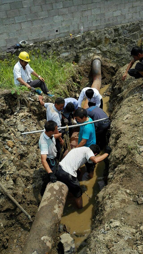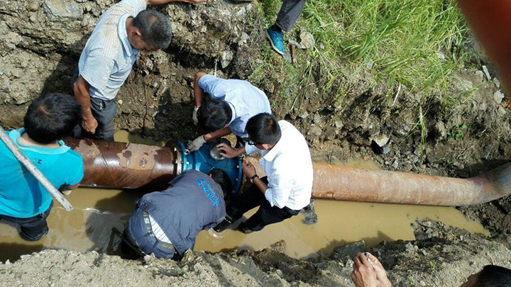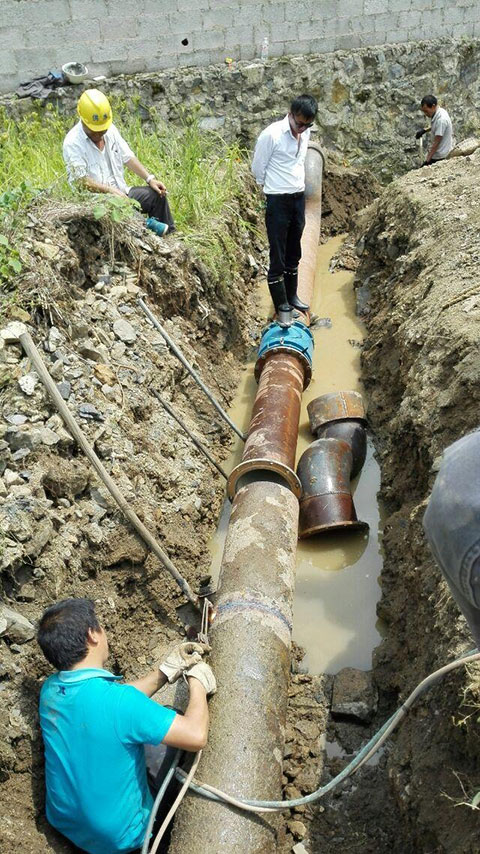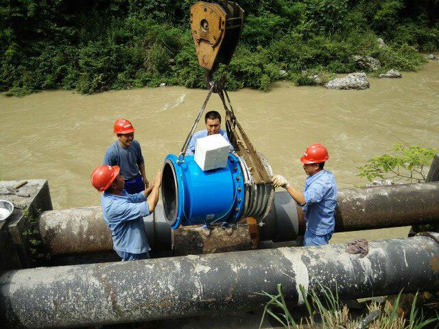大口徑電池供電電磁流量計(jì)安裝現(xiàn)場