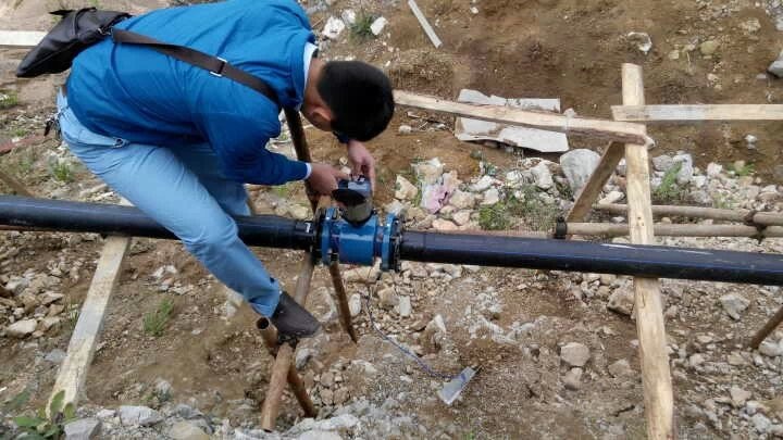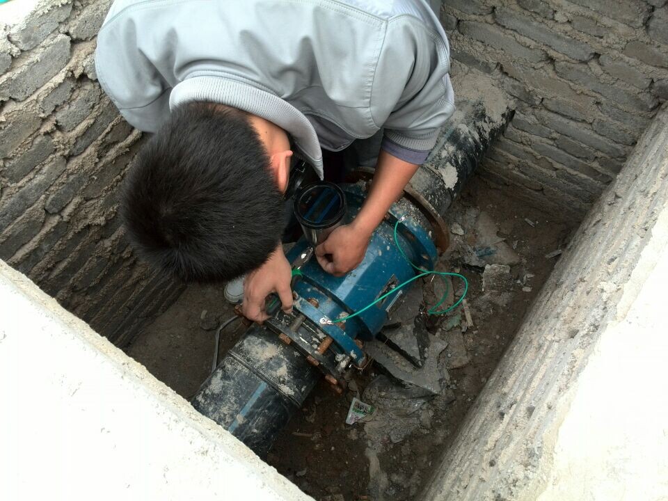 城鄉(xiāng)一體化供水計(jì)量電池供電電磁流量計(jì)安裝現(xiàn)場