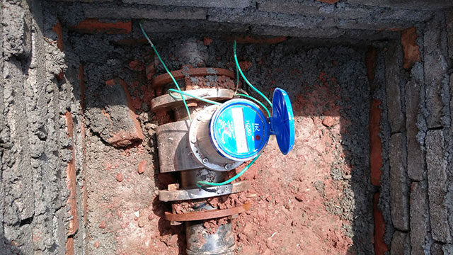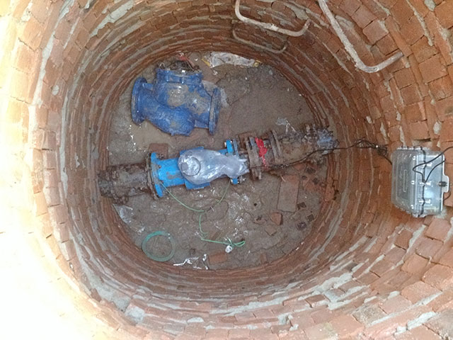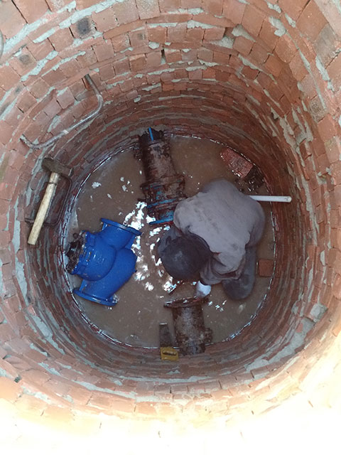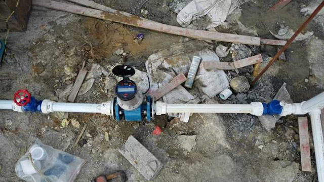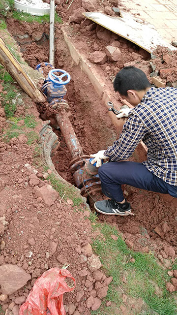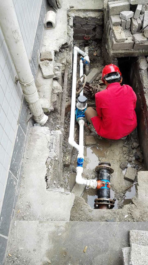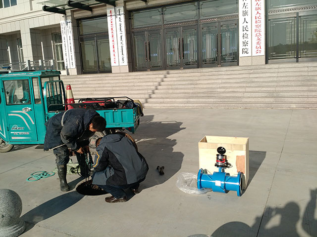電池電磁流量計替換大口徑機械式水表安裝現場