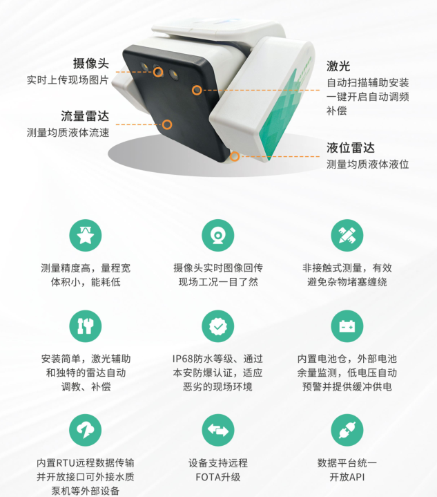 多波段多普勒雷達(流量計)是一款非接觸式測量流體的流量產(chǎn)品,產(chǎn)品用于測量市政排水、下水道、暗渠道路、排水監(jiān)測、工業(yè)污染排放測量、廢水處理監(jiān)測、環(huán)保排污口監(jiān)測、江河流監(jiān)測、灌溉水量監(jiān)測、生態(tài)放流監(jiān)測等,獲得測量流體的水位、流速、流量。